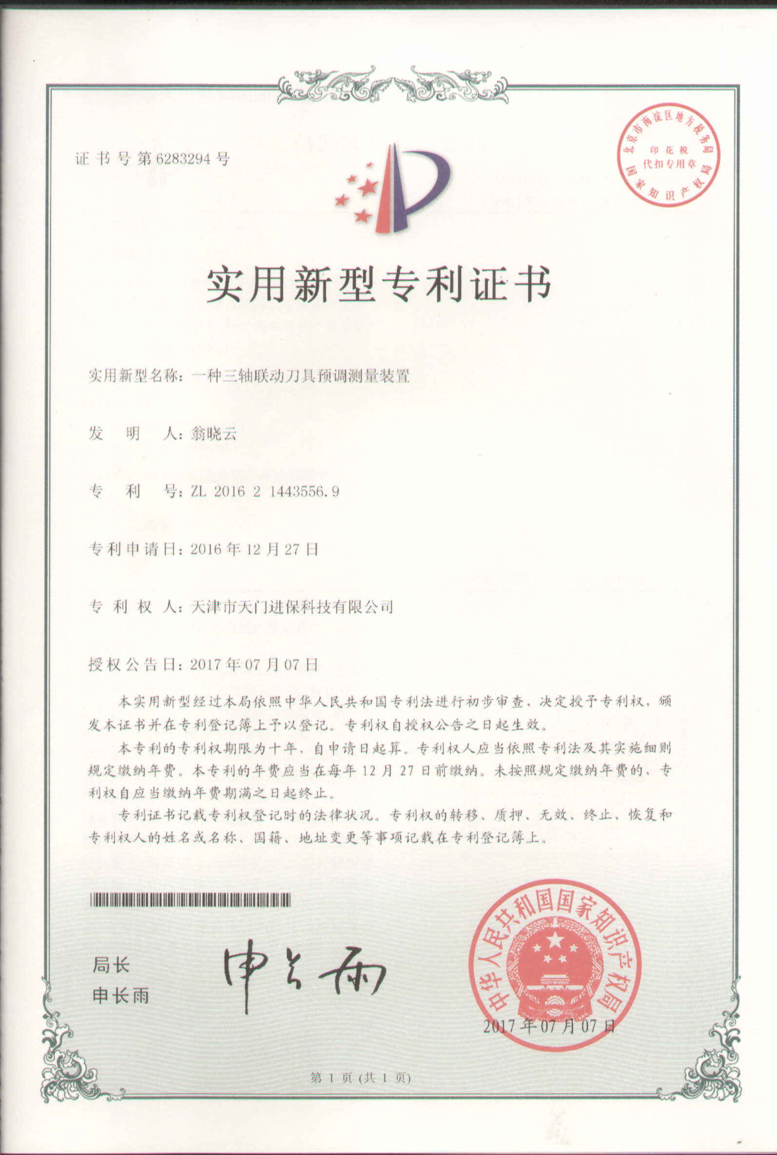 天門進保(天津)科技股份有限公司(原天門精密機械有限公司)是一家集科研、設計、生產、維修、銷售和系統集成為一體的高新技術企業,也是我國較早開發、設計和制造刀具預調測量儀的公司之一。公司成立于1992年8月,憑借在刀具預調測量儀(對刀儀)領域的專業水平和成熟的技術,在精密檢測儀器領域迅速崛起。 公司于2014年成功研發出我國第一臺全自動高性能刀具預調測量儀,打破了刀具預調高端檢測裝備長期被國外產品壟斷的局面,技術的植入提高了產品的核心競爭力。